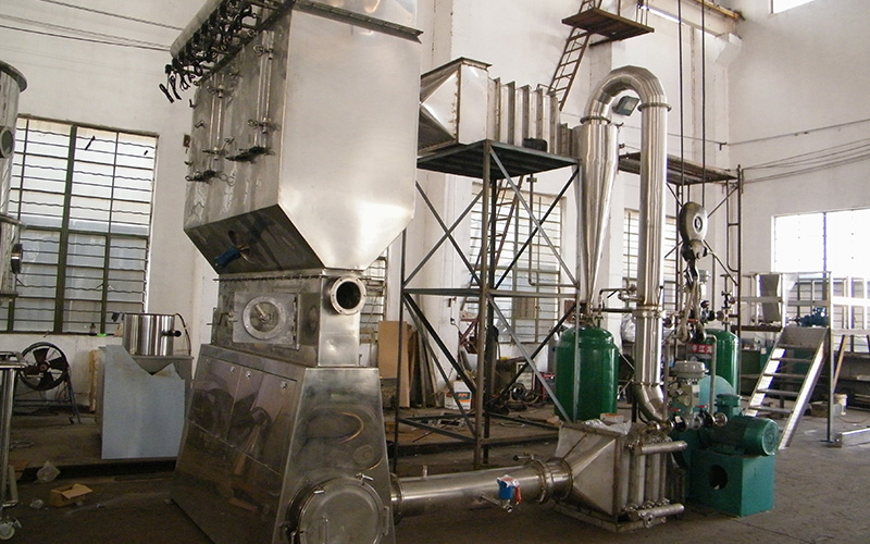 沸腾干燥,又称流化床,它是由空气过滤器、加热器、沸腾床主机,旋风分离器,布袋除尘器、高压离心风机、操作台组成,由于干燥物料的性质不同,配套除尘设备时,可按需要考虑,可同时选择旋风分离器、布袋除尘器,也可选择其中一种,一般来说比重较大的如冲剂及颗粒料干燥只需选择旋风分离器,比重较轻的小颗粒状和粉状物料需配套布袋除尘器,并备有气力送料装置及皮带输送机供选择。