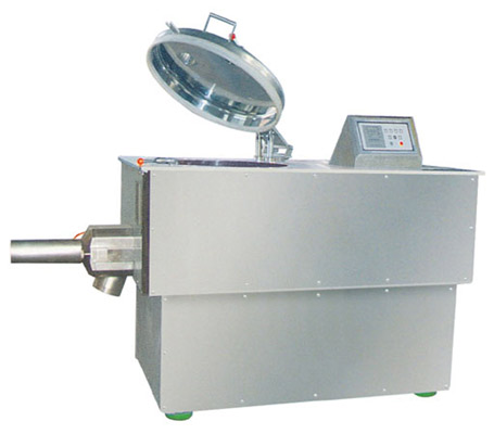 粉体物料与粘合剂在圆筒形容器中由底部混合浆充分混合成湿润软材,然后由侧置的高速粉碎桨切割成均匀的湿颗粒。